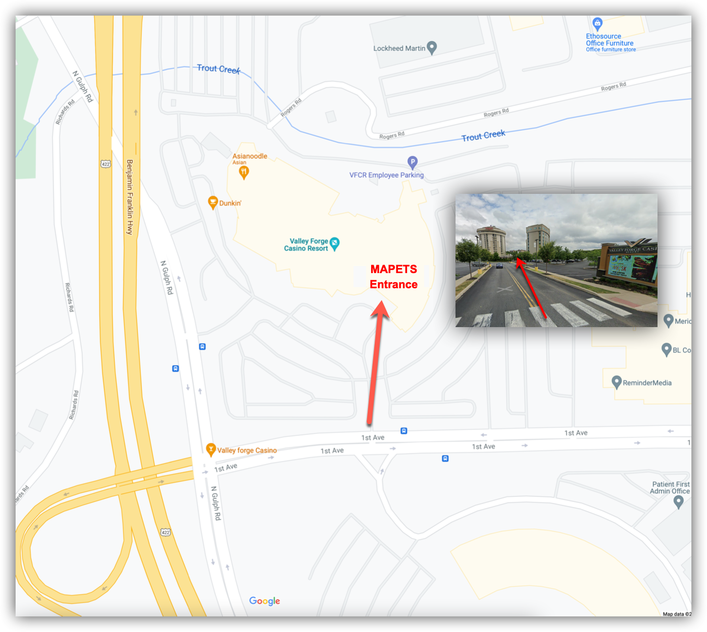 For directions to the Valley Forge Casino and Convention Center, please note the MAPETS entrance and click on the image below: